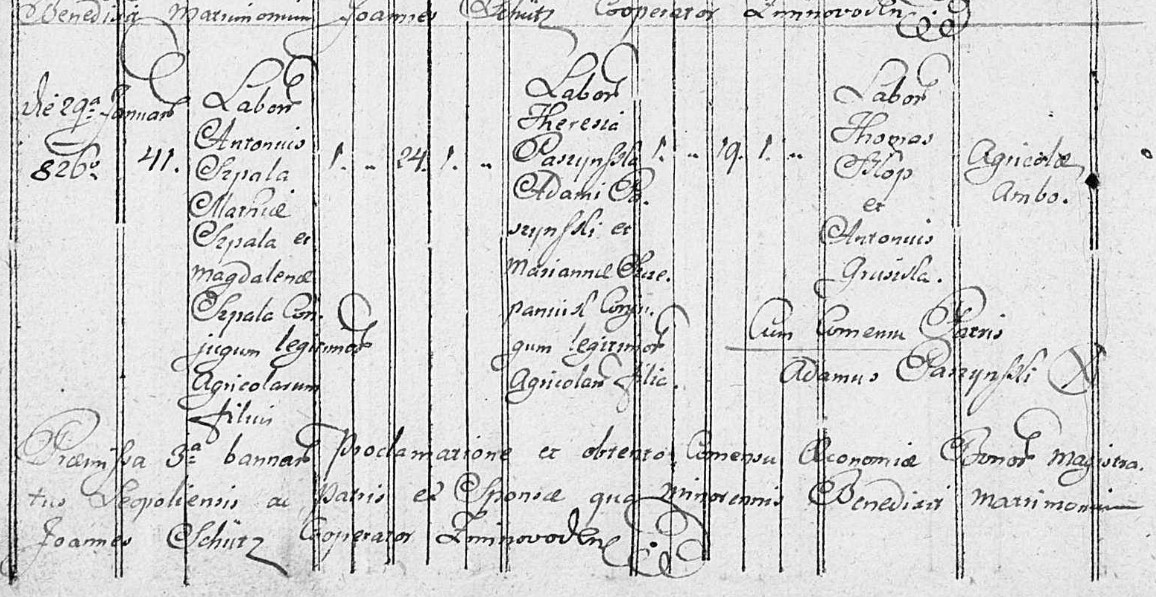 metryka ślubu Antoni Szpala i Teresa Paszyńska 29.01.1826 Biłohoryszcze