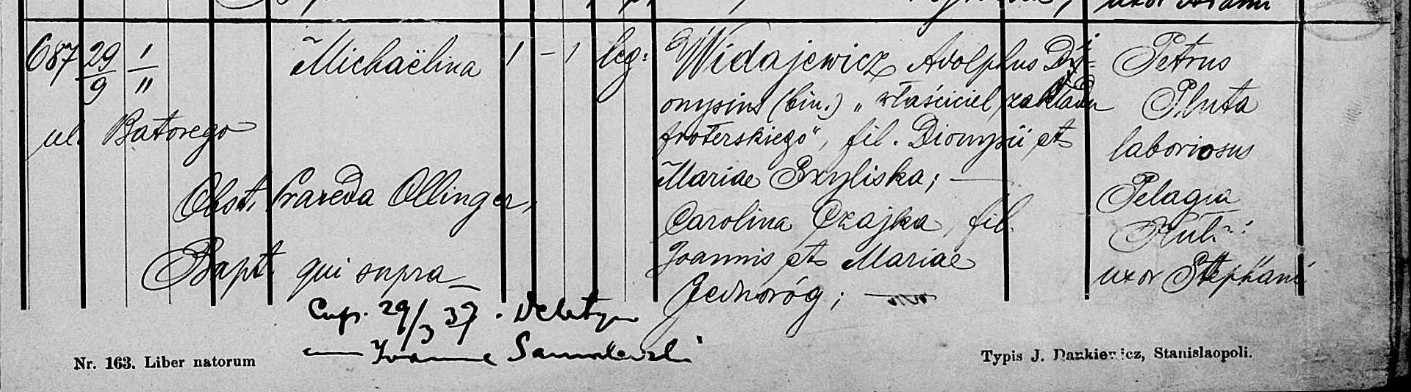 Birth: 29 September 1907 32 29 -- Stanisławów, par. Iwano-Frankiwsk-Stanisławów-Kolegiata