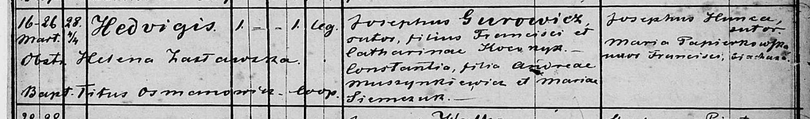 metryka urodzenia Jadwiga Gurowicz c. Józefa i Konstancji Muszynkiewicz 16.03.1877 par. Iwano-Frankiwsk-Stanisławów - Kolegiata