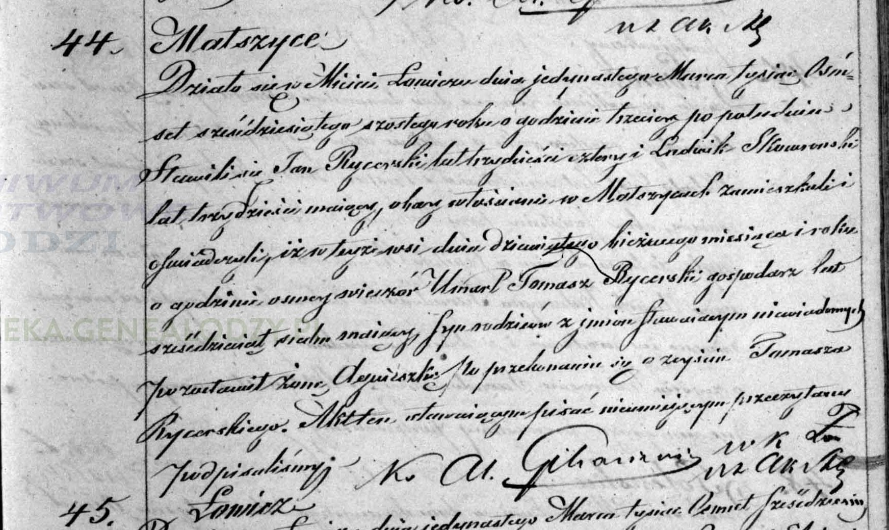 metryka zgonu Tomasz Rycerski m. Agnieszki 19.03.1866 Małaszyce