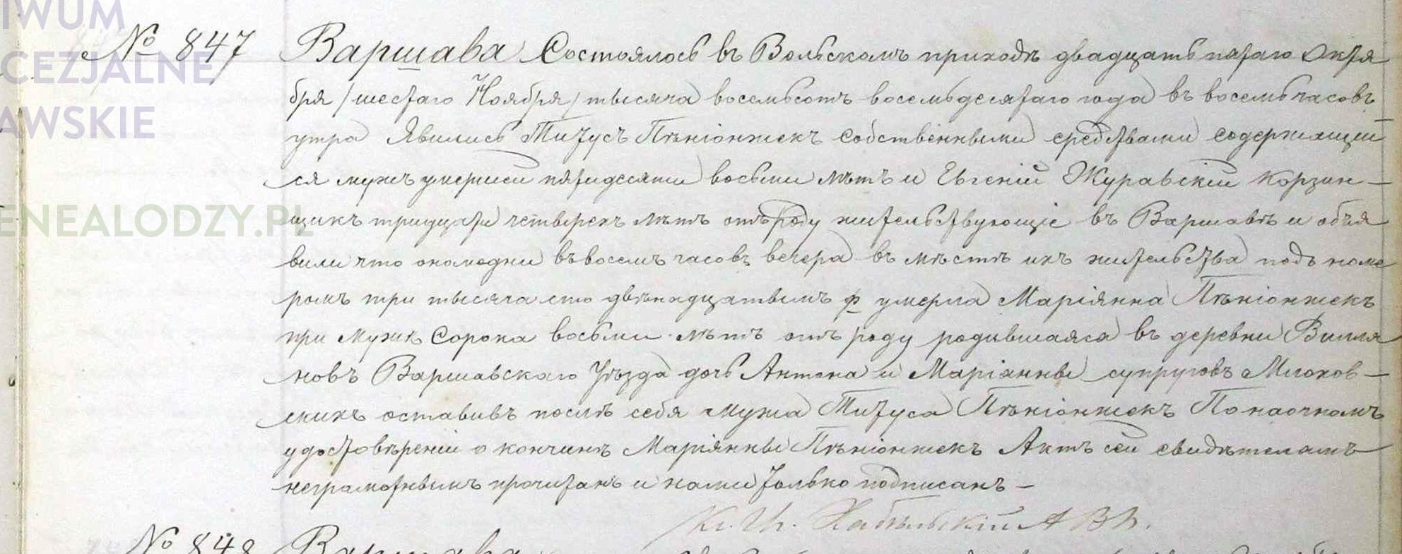 metryka zgonu marianna Pieniążek zd. Młochowska c. Antoniego i Marianny 6.11.1880 Warszawa