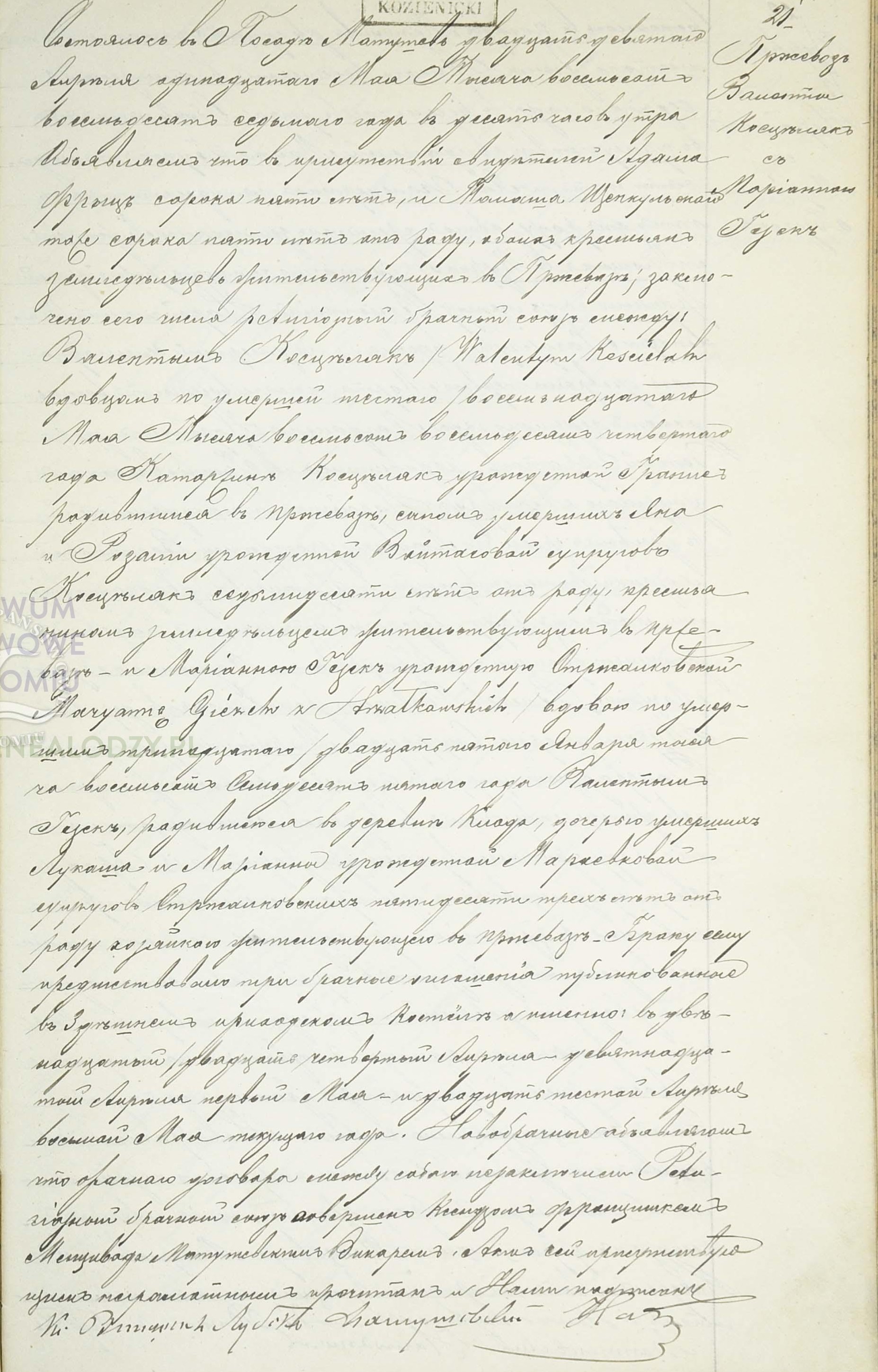 metryka ślubu Walenty Kościelak wdowiec i Marianna Giezek zd. Strzałkowska wdowa 11.05.1887 Magnuszew |