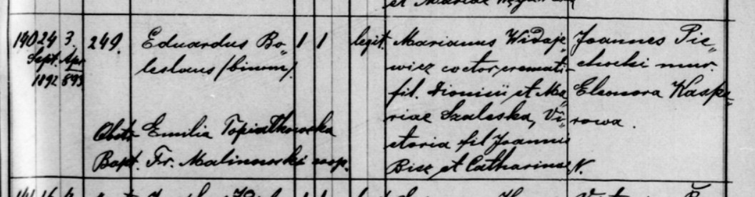 metryka urodzenia Edward Bolesław Widajewicz s. Mariana s. Dionizego i Wiktorii Bisz 24.09.1892 Brzeżany |