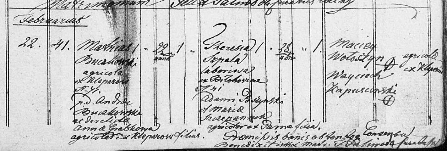 metryka ślubu Maciej Buczkowski i Teresa Szpala 22.02.1835 Zimna Woda