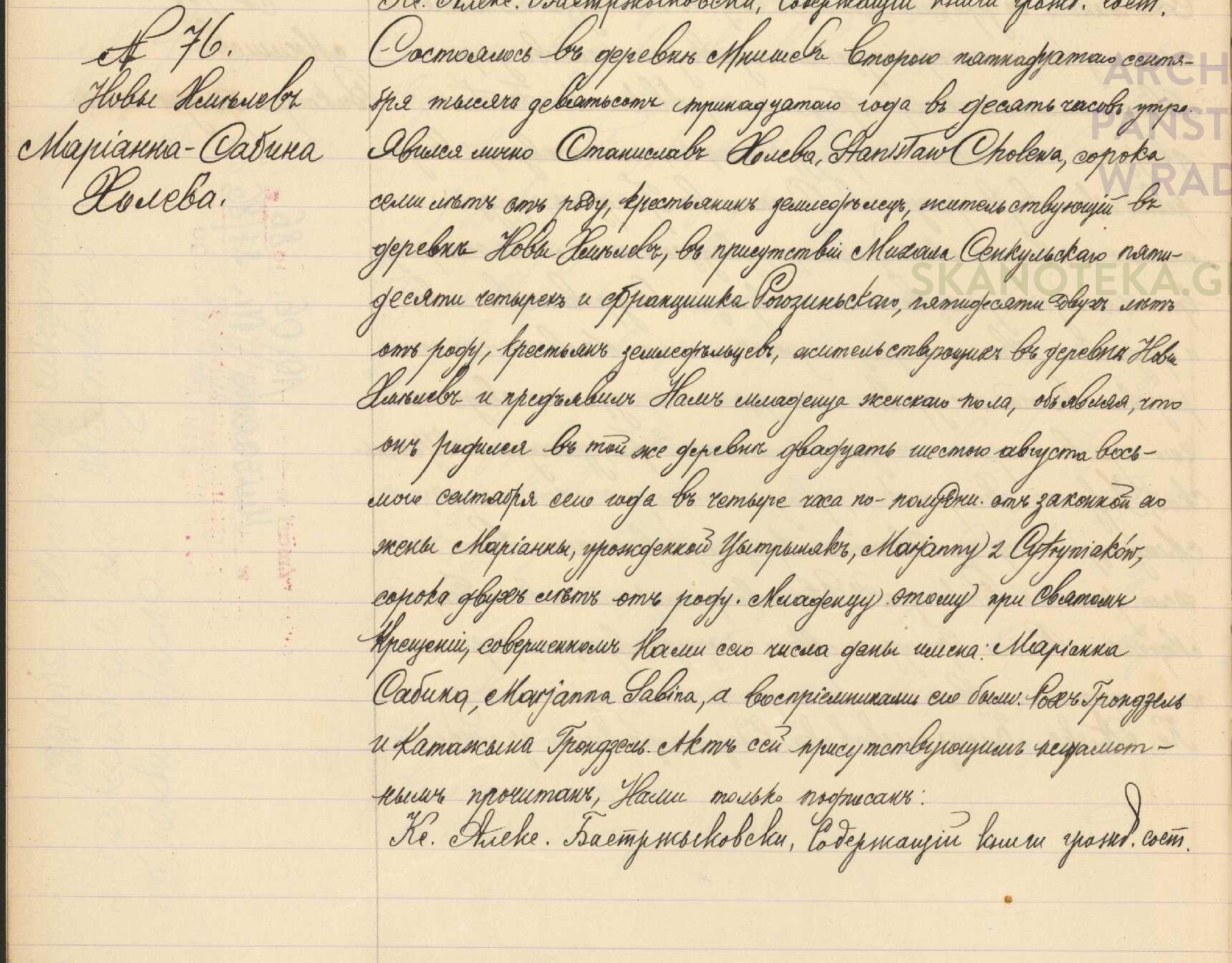 Title: metryka urodzenia Marianna Sabina Cholewa c. Stanisława i Marianny Cytryniak 8.09.1913 Nowy Chmielew