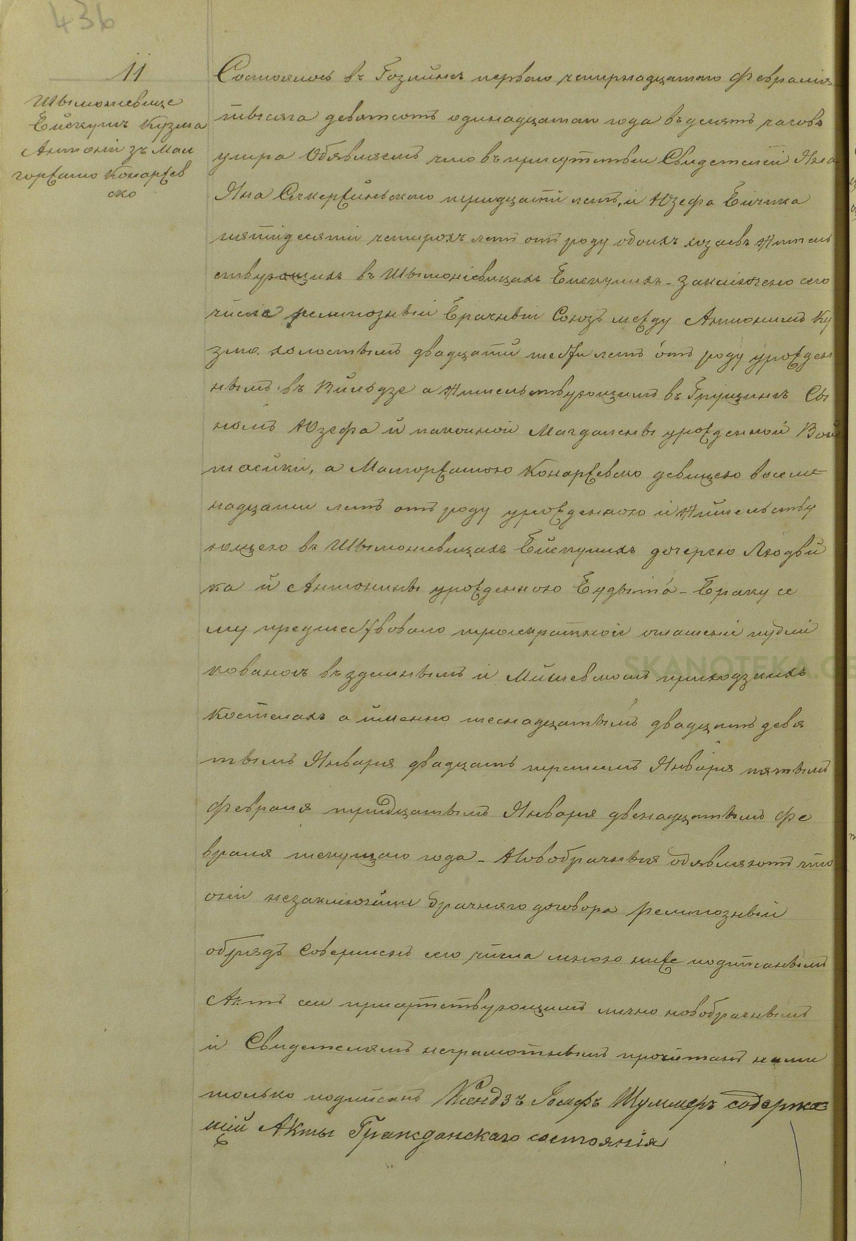 metryka ślubu Antoni Kuźnia i Małgorzata Konarzewska 14.02.1911 Szymanowice Biskupie, par. Goźlin |