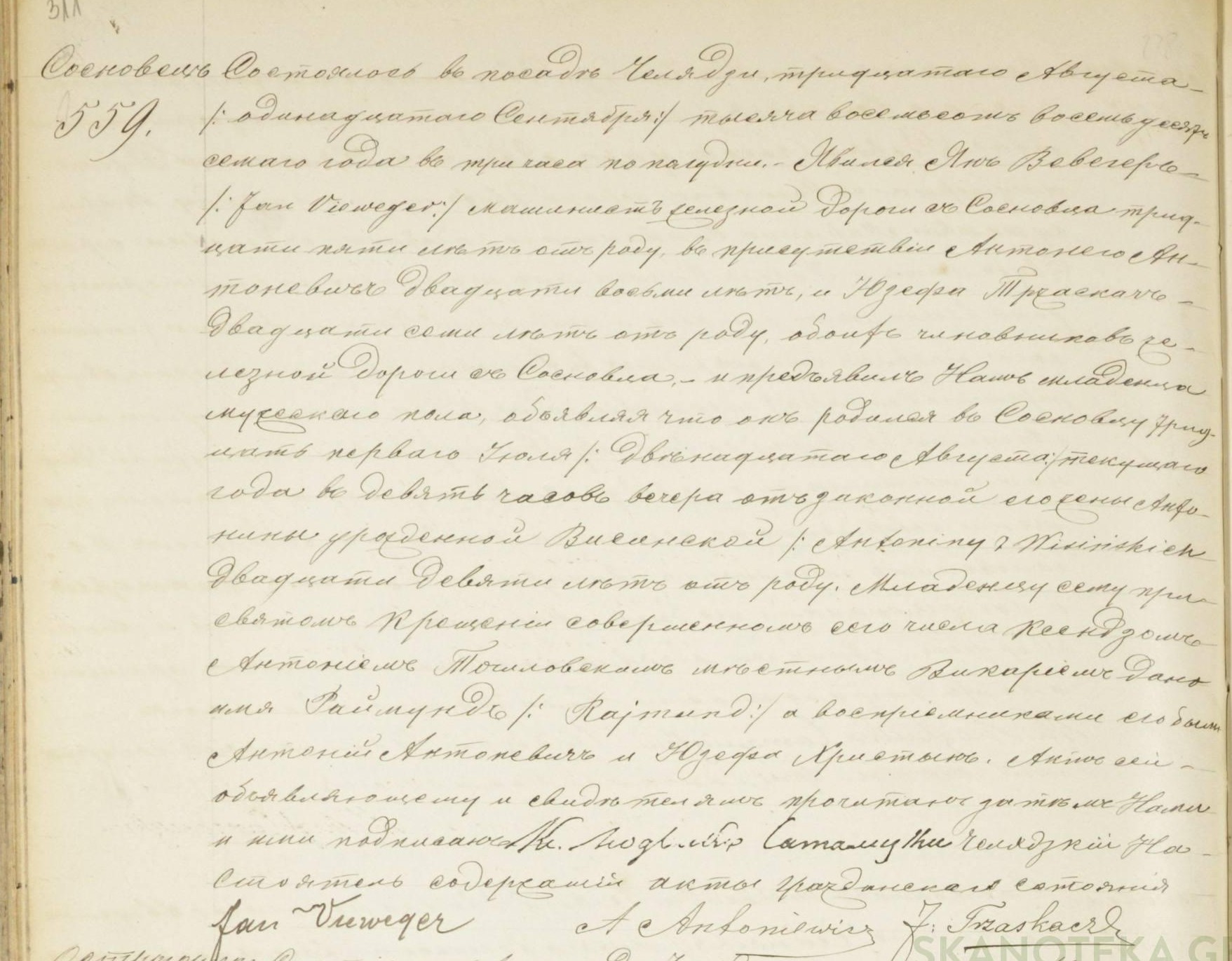 metryka urodzenia Rajmund Vieweger s. Jana i Antoniny 12.08.1887 Sosnowiec |
